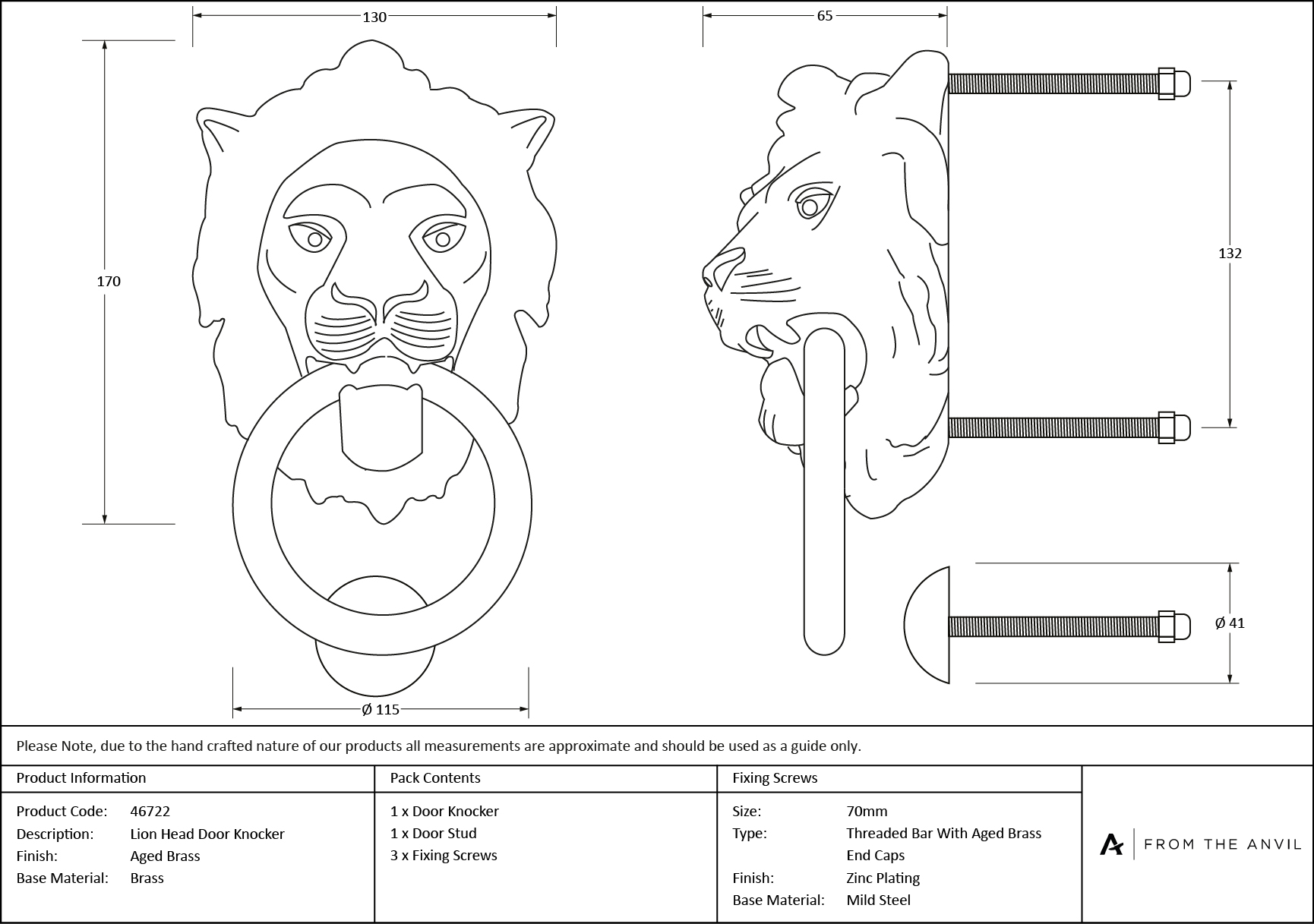 - Our Lion Head door knocker is forged from solid brass and its intricate detailing emphasises the high-quality materials and manufacturing techniques used. A perfect design choice for external doors with matching products available.