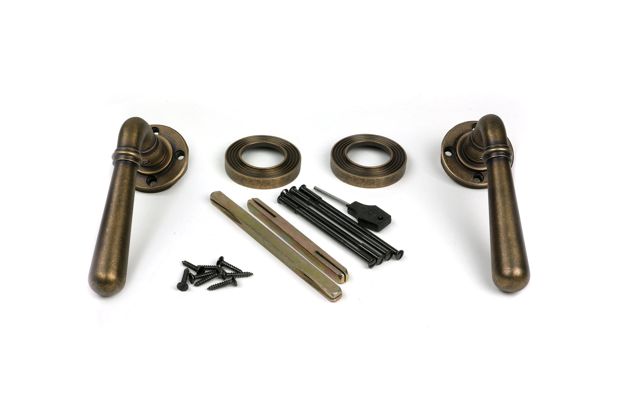 - Our weighty Newbury lever handle range is forged from solid brass which emphasises the high quality materials and manufacturing techniques used. A perfect design choice to use throughout your property with many other matching products available.