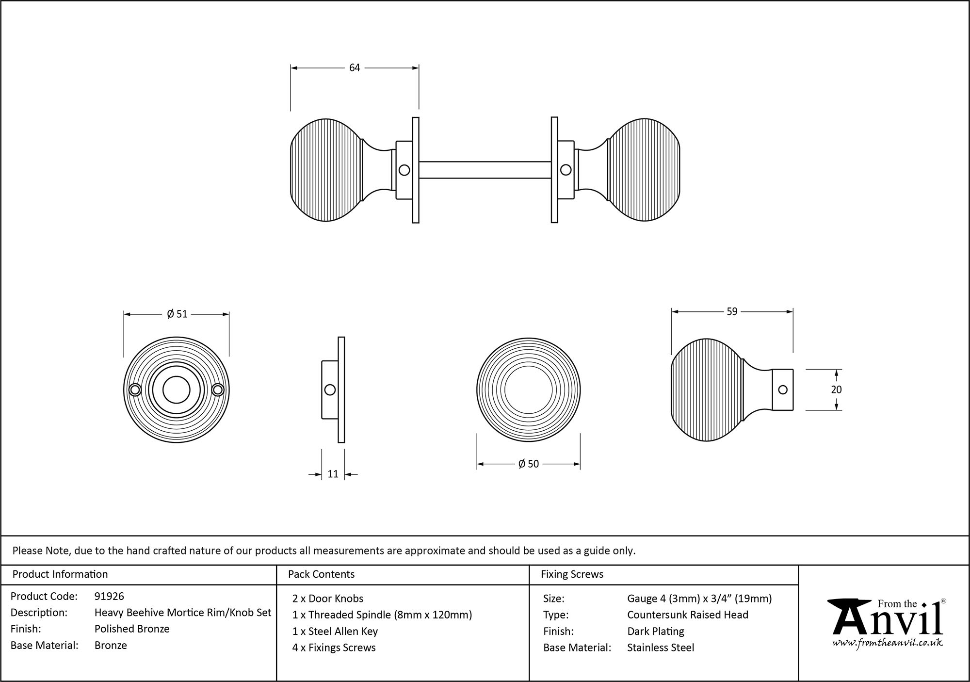 Heavy Beehive Mortice/Rim Knob Set